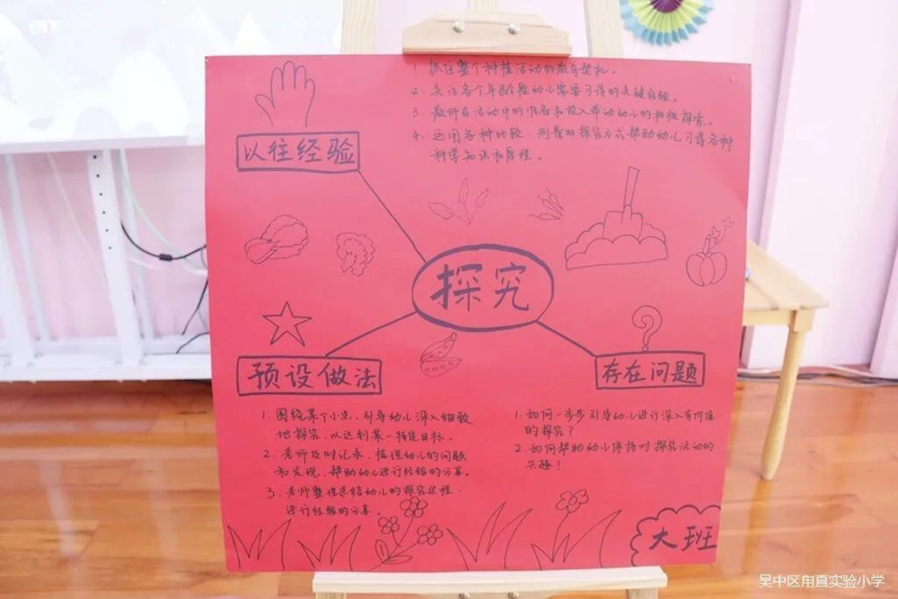 我们幼儿园近几年一直在开展生态种植活动,老师们也能够在工作中总结一些经验,撰写种植的论文,有的发表有的获奖。2019年4月我们申报了吴中区教育科学“十三五”规划课题,课题名称是《种植活动中幼儿探究能力培养的实践研究》。探究能力包括观察实验能力、科学思考能力、表达交流能力、设计制作能力等。我们开展此次教研活动,围绕课题展开研讨。