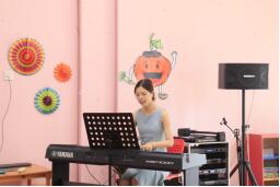首先,老师们弹唱了自己精心准备好的歌曲。甜美的歌声,伴随着黑白键上流淌出的悠悠琴声,让人陶醉。