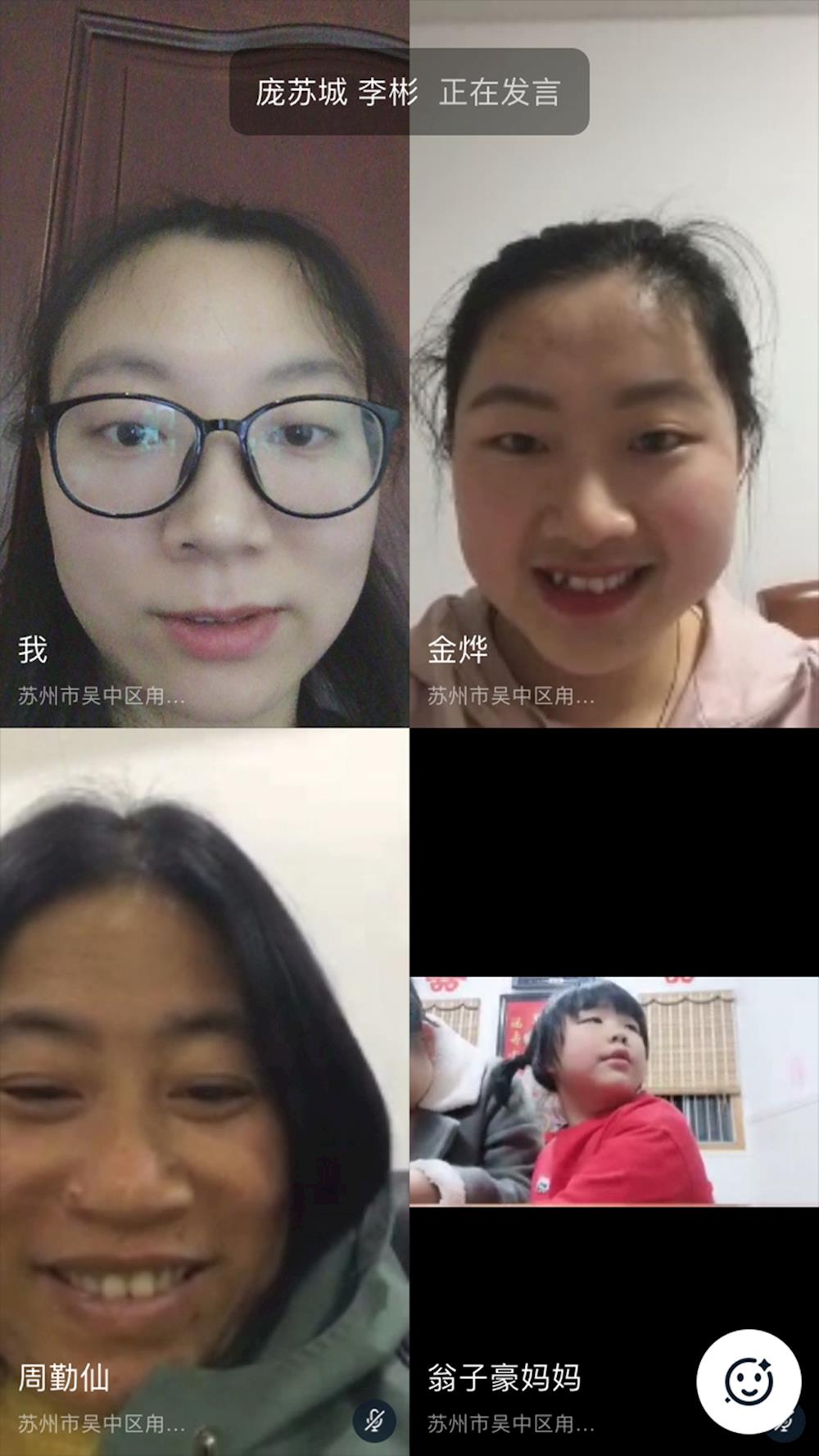 随着“叮叮叮”的声音,老师、小朋友、家长朋友们都相继出现在屏幕中。活泼的孩子们兴奋地和老师打招呼,告诉老师心中久藏的话语——“老师,我好想你们”“老师,我想去上幼儿园”。老师也开心地向小朋友打招呼,并向家长介绍了一些开学的准备工作和注意事项,愉快地开启了为时一个小时的见面会。