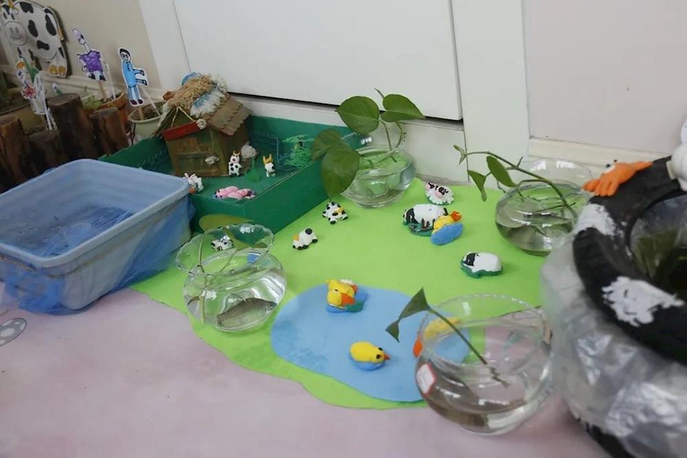 自然角里有观赏区、种植区、饲养区、实验区、工具区,每个班的自然角都有着自己的风格,田园风、清新风、复古风……各具特色,却都透露着童真。孩子们喜欢在自然角里观察、照顾植物和小动物们,并将自己的发现记录下来。