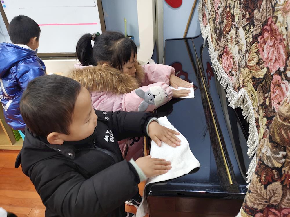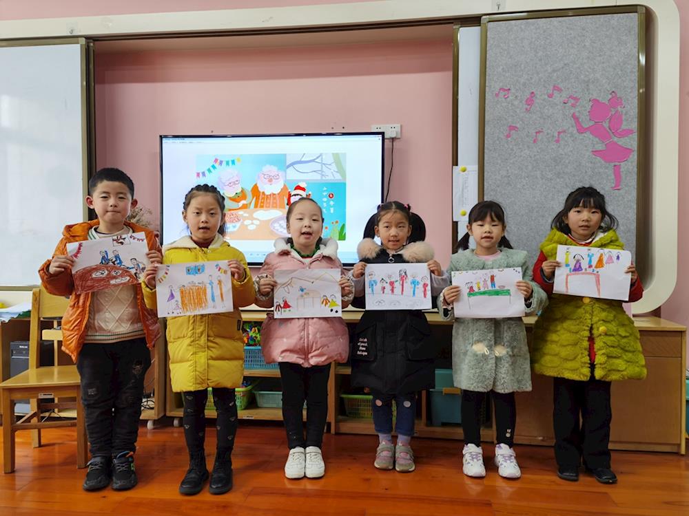 孩子们用歌声传达独新年的祝福,用画笔画下全家福。孩子们像勤劳的“小蜜蜂”一样忙开了,将教室打扫得很干净,迎接新年。