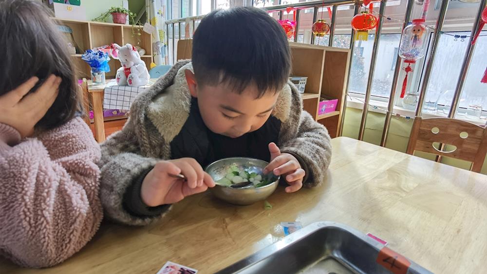 正月十五吃元宵,是我国由来已久的习俗。瞧,孩子们化身小小糕点师,用自己的方式搓、捏、压、团,做出一个个彩色的元宵,元宵在滚滚开水中浮起来就说明煮熟了,咬一口,真好吃,自己做的元宵就是美味。